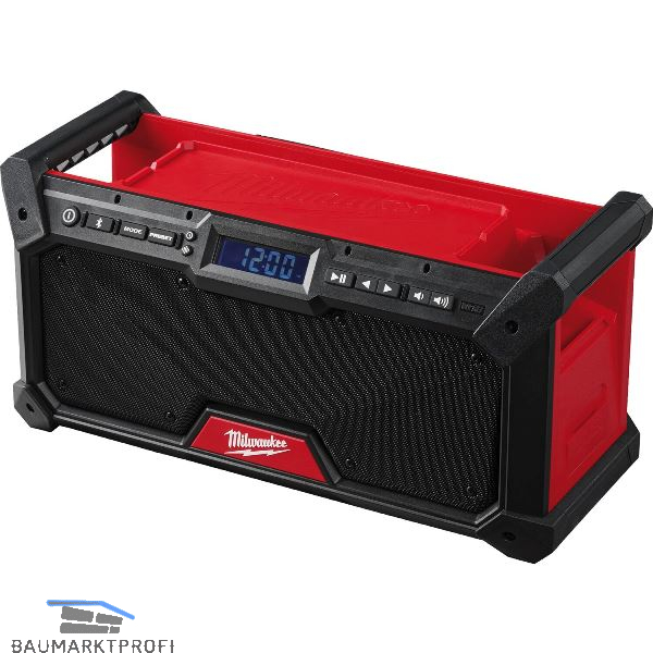 Leistungsstarkes Audiosystem - DAB+/FM-Empfänger mit digitalem Prozessor liefert hohe Empfangsgenauigkeit und Signalklarheit. Digitaler Bluetooth®-Empfänger, spielt Musik in bis zu 30 m Entfernung von Ihrem Smartphone, Computer oder Tablet. Integrierte Griffe und Aufbewahrungsmöglichkeiten an Bord. Zwei 8,89-cm-Klangregler. Zwei-Hochtonlautsprecher mit einem klaren Höhenklang. Anpassbarer Klangregler für verbesserte Klangqualität und Voreinstellungen für 18 Stationen. Stoßdämpfende Endkappen und Lautsprechergitter aus Metall, Geschützte USB-C-Steckdose. Stromversorgung über MILWAUKEE® M18™-Akkus oder Netzanschluss. Bis zu 13 Stunden Betriebszeit mit einem M18™ REDLITHIUM™ 5,0 Ah-Akkupack.