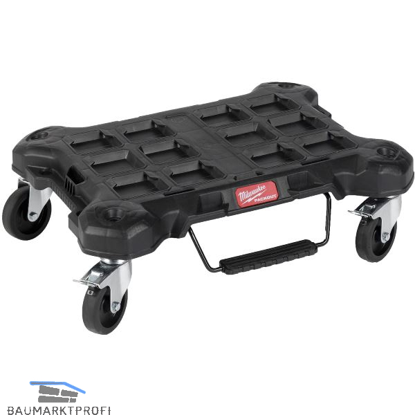 Langlebige Rollen für leichtes Bewegen unter hoher Last auf der Baustelle. Inklusive Feststellbremse und 2 seitlichen Verriegelungen, um das Rollbrett anzuhalten und einfach PACKOUT™ Koffer und Taschen zu verbinden. Aus dem modularen Aufbewahrungssystem PACKOUT™.