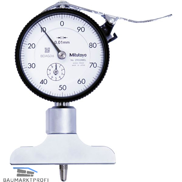 Analoge Ausführung mit Skalenteilung entgegen Uhrzeigersinn, 1 Zeigerumdrehung = 1 mm. Auflagefläche der Messbrücke gehärtet, geschliffen und geläppt.