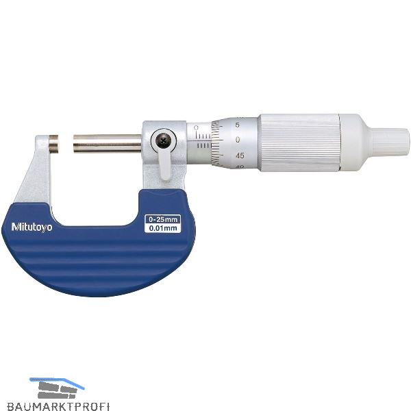 Bügelmessschraube mit kombinierter Gefühlsratsche. Für Einhandbedienung und Bedienung im Halter. Messflächen hartmetallbestückt, feinstgeläppt. Mit Feststelleinrichtung.