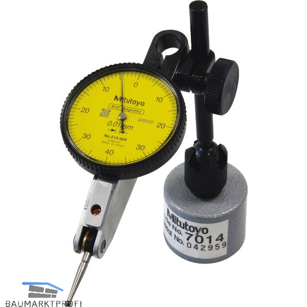 Lieferung inkl. Fühlhebelmessgerät 513-404E, Mini-Magnet-Stativ 7014-10, Schaft mit Klemmring, in Kassette.