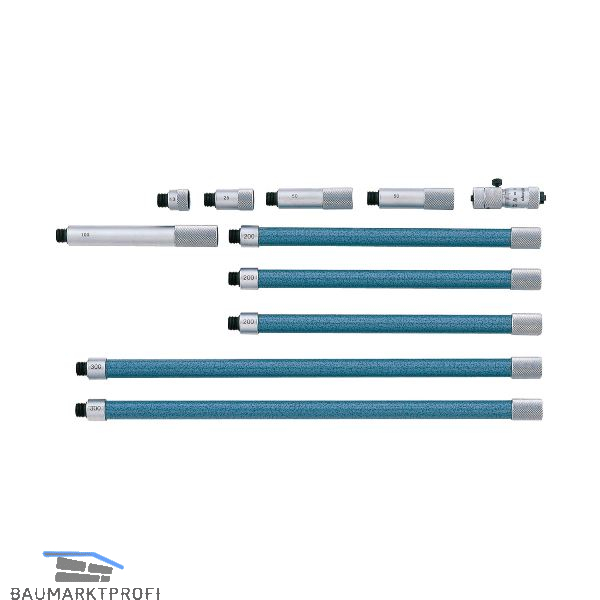 Analog für 2-Punkt Innenmessung. In zusammensetzbarer Ausführung. Skalentrommel und Skalenhülse mattverchromt. Messspanne 13 mm. Messflächen gehärtet. Verlängerungs-ø 12,5 mm.