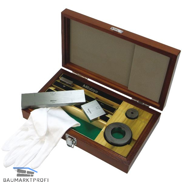 Bestehend aus 3 Parallelendmaßen und zwei Einstellringen (ø 4,0 / 25,0 mm) aus Stahl.