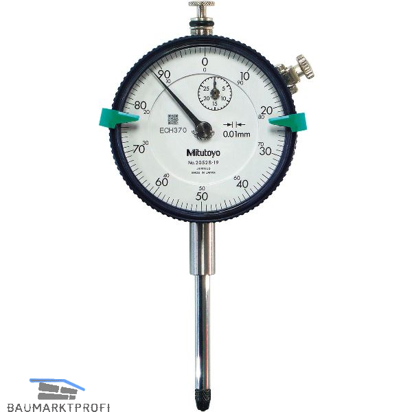 Mit Stoßschutz, edelsteingelagert, gedämpften Endpunkt und fortlaufende Skala, Außenring Ø 57 mm. 1 Zeigerumdrehung = 1 mm. Entspricht DIN EN ISO 463 in Verbindung mit DIN 878.