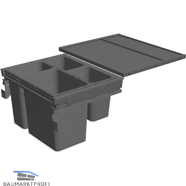 - Stabile, glasfaserverstärkte Bügelgriffe fixieren die Müllbeutel und erleichtern das Entnehmen.