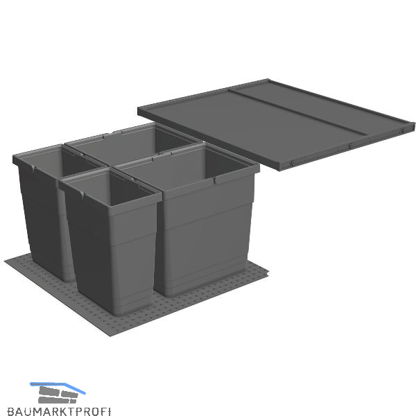 Dieses intelligente Abfallsammler-System ist in unterschiedlichen Größen und Volumen lieferbar. Die aus einem Guss gespritzten Behälter sind besonders unempfindlich und können als Set für jede Anwendung kombiniert werden: Einfach-, Zweifach-, Dreifach- oder Mehrfachtrennung. Für sicheren Halt sorgt die auf dem Auszugsboden eingelegte Platte mit Fixierungsnoppen.