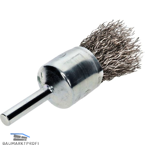 Gewellte Pinselbürste in Industriequalität für den Einsatz auf schnelllaufenden Maschinen oder Bohrmaschinen. Zum Entrosten, Entlacken, Glätten, Kantenverrunden, Entgraten, Innenbearbeitung.