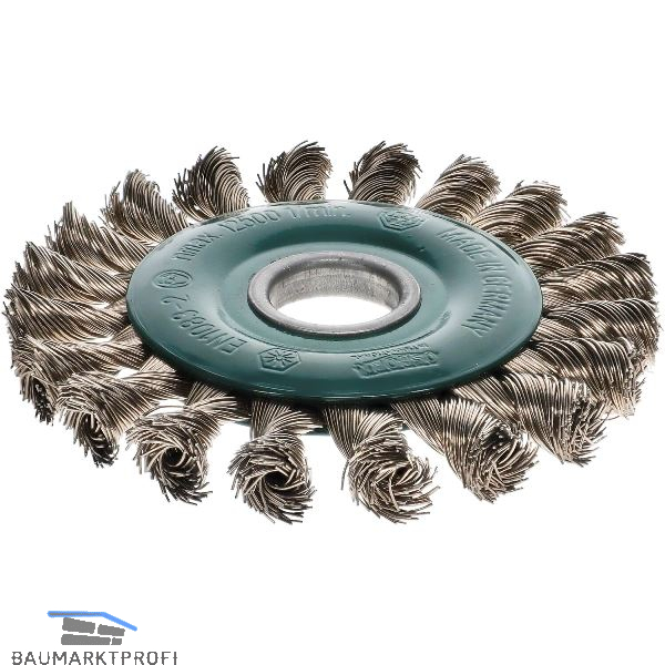 Gezopfte Rundbürste in Industriequalität zur universellen Anwendung auf allen gängigen Winkelschleifer. Hohe Standzeit trotz aggressiver und schneller Reinigung. Zum Aufrauen, Entgraten und einfachen Entrostarbeiten.