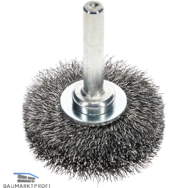 Gewellte Rundbürste in Industriequalität für den Einsatz auf Bohrmaschinen und schnelllaufenden Maschinen. Zum Bearbeiten von Bohrungen, Kanten verrunden, Entgraten und leichte Reinigungsarbeiten.