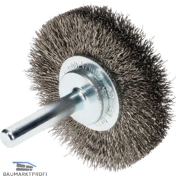 Gewellte Rundbürste in Industriequalität für den Einsatz auf Bohrmaschinen und schnelllaufenden Maschinen. Zum Bearbeiten von Bohrungen, Kanten verrunden, Entgraten und leichte Reinigungsarbeiten.