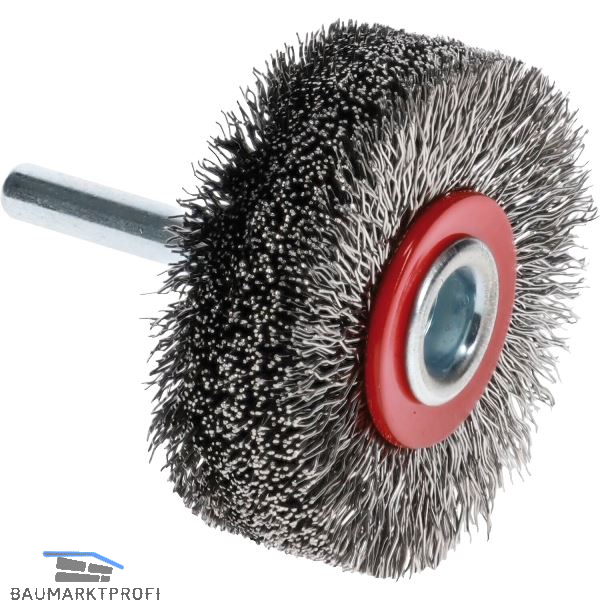 Gewellte Rundbürste in Industriequalität für den Einsatz auf Bohrmaschinen und schnelllaufenden Maschinen. Zum Bearbeiten von Bohrungen, Kanten verrunden, Entgraten und leichte Reinigungsarbeiten.