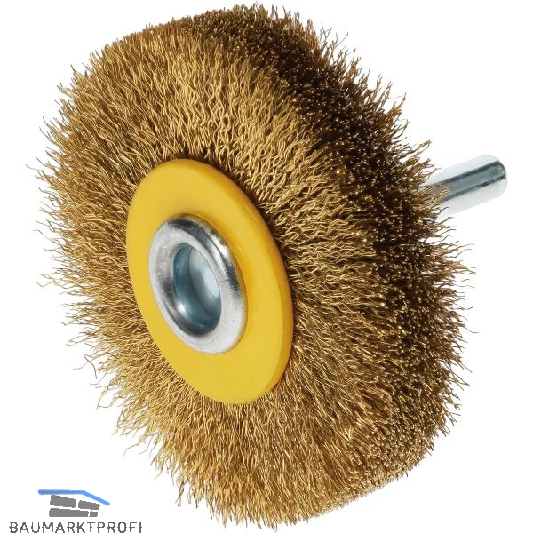 Gewellte Rundbürste in Industriequalität für den Einsatz auf Bohrmaschinen und schnelllaufenden Maschinen. Zum Bearbeiten von Bohrungen, Kanten verrunden, Entgraten und leichte Reinigungsarbeiten.