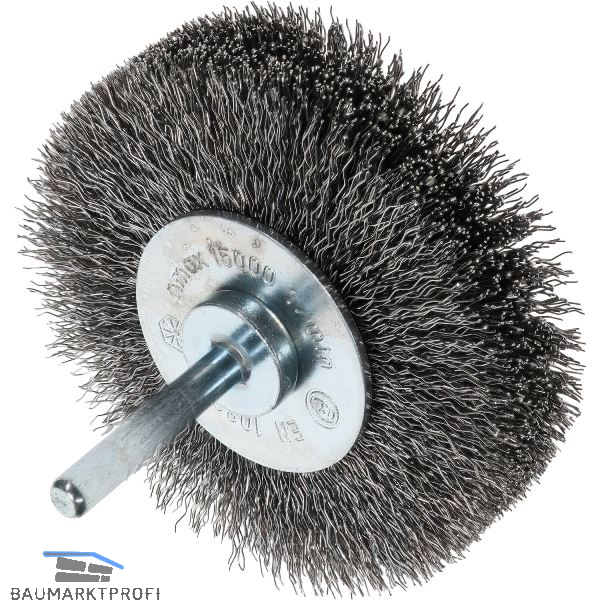 Gewellte Rundbürste in Industriequalität für den Einsatz auf Bohrmaschinen und schnelllaufenden Maschinen. Zum Bearbeiten von Bohrungen, Kanten verrunden, Entgraten und leichte Reinigungsarbeiten.