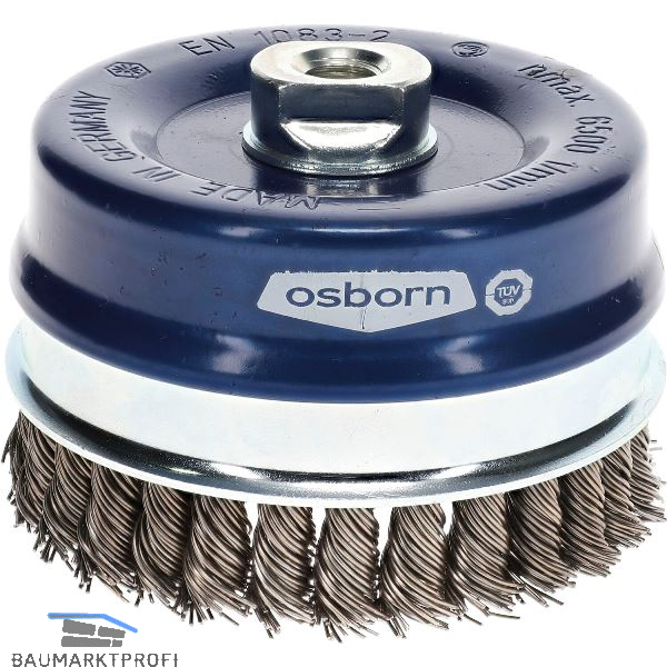 Gezopfte Topfbürste in Industriequalität zur Aufnahme auf allen gängigen Winkelschleifern. Prädestiniert für die Reinigung von großen Flächen. Zusätzliche Besatzstabilisierung durch den Stützring. Stützring kann nach Abnutzung der Besatzlänge einfach abgeschlagen werden, um Restbesatz zu nutzen. Zum Entrosten, Entlacken, Entfernung von Schlacke, Silikatrückstände und Blauverfärbung.