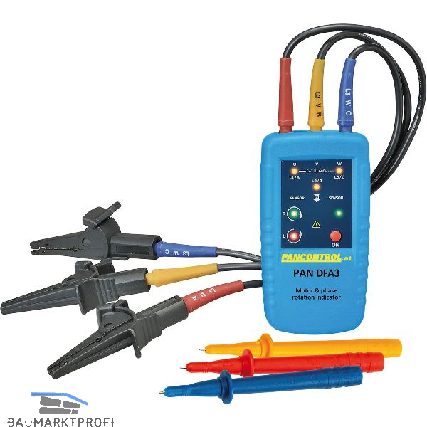 - Drehfeldrichtungsanzeige: grüne LED für Rechtsfeld und rote LED für Linksfeld