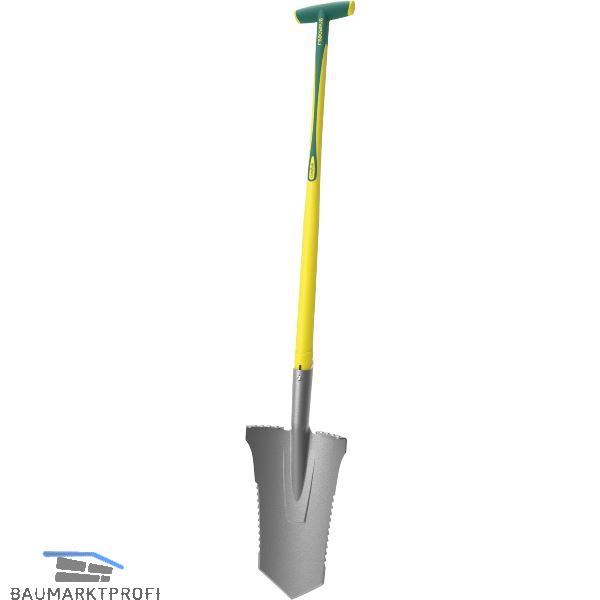 Das Profi-Werkzeug für Strauch- und Heckenumsetzung. Ideal zum Pflanzen und Umpflanzen – das speziell geformte Kopfprofil erleichtert das Entwurzeln, Lösen von Erdklumpen und Durchtrennen von Wurzeln. Die 3?mm starke, gehärtete Klinge (40–50?HRC) mit gerippter Oberfläche und vollverschweißter Hülse garantiert maximale Widerstandsfähigkeit. Der ergonomische Novagrip-Stiel aus hochfesten Glasfasern mit rutschfestem Elastomergriff und 90?cm Stützgriff sorgt für komfortables Arbeiten und große Hebelwirkung. Fußstütze mit rutschfesten Aussparungen, geschliffene Kanten und V-Spitze ermöglichen müheloses Eindringen in den Boden.