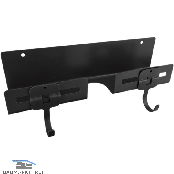 Mit 2 Schrauben den Besenhalter in ein Möbel, an die Schrank-Innentür oder eine Wand schrauben und die Einhängehaken positionieren.