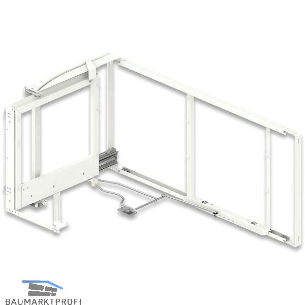 Der Eckauszug mit Frontanbindung trägt die Einhängetablare und führt sie aus dem Eckmöbel.