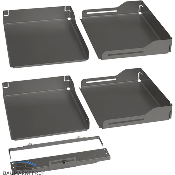 - Vordere Tablare höhenverstellbar, hintere Tablare ausziehbar