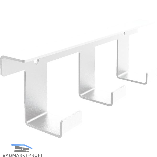 Ein Kabelkanal im Wandprofil nimmt alle Kabel fu?r Licht, TV, Audio- und andere Geräte auf. Die Tablare können auch mit einer Beleuchtung ausgestattet werden. An die Wandhalterung lassen sich Spiegel, Bilder, Fernseher oder Bildschirme befestigen. Accessoires wie Kleiderstangen, Hakenleisten, Hosenhalter und Schuhregale komplettieren das System. Wandprofil-Set in alu natur eloxiert, Träger und Zubehör in weiß Feinstruktur auf Anfrage lieferbar!