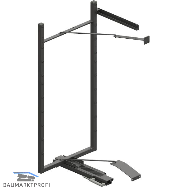 Der Beschlag trägt die Einhängetablare und befördert sie aus dem Möbel.