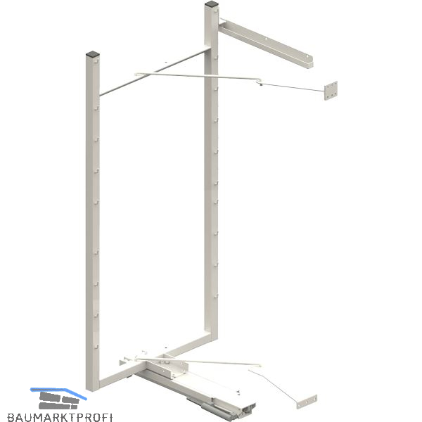 Der Beschlag trägt die Einhängetablare und befördert sie aus dem Möbel.