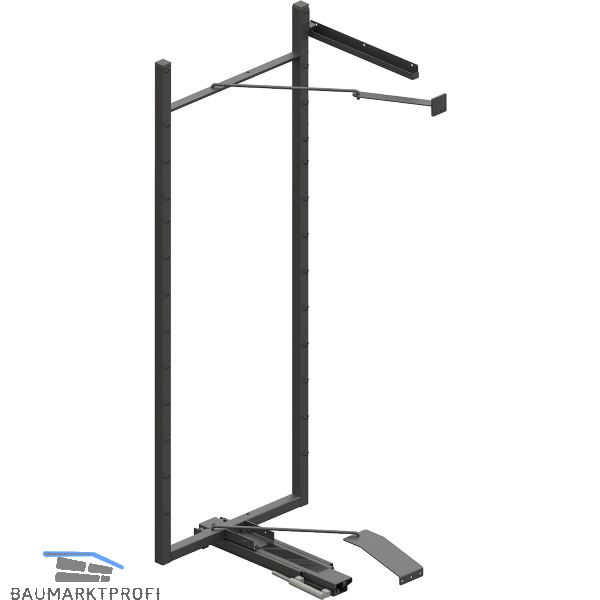 Der Beschlag trägt die Einhängetablare und befördert sie aus dem Möbel.