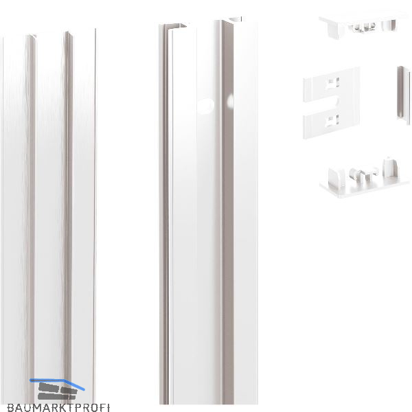 Ein Kabelkanal im Wandprofil nimmt alle Kabel fu?r Licht, TV, Audio- und andere Geräte auf. Die Tablare können auch mit einer Beleuchtung ausgestattet werden. An die Wandhalterung lassen sich Spiegel, Bilder, Fernseher oder Bildschirme befestigen. Accessoires wie Kleiderstangen, Hakenleisten, Hosenhalter und Schuhregale komplettieren das System. Wandprofil-Set in alu natur eloxiert, Träger und Zubehör in weiß Feinstruktur auf Anfrage lieferbar!
