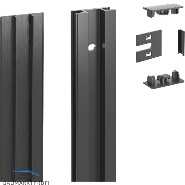 Ein Kabelkanal im Wandprofil nimmt alle Kabel fu?r Licht, TV, Audio- und andere Geräte auf. Die Tablare können auch mit einer Beleuchtung ausgestattet werden. An die Wandhalterung lassen sich Spiegel, Bilder, Fernseher oder Bildschirme befestigen. Accessoires wie Kleiderstangen, Hakenleisten, Hosenhalter und Schuhregale komplettieren das System. Wandprofil-Set in alu natur eloxiert, Träger und Zubehör in weiß Feinstruktur auf Anfrage lieferbar!
