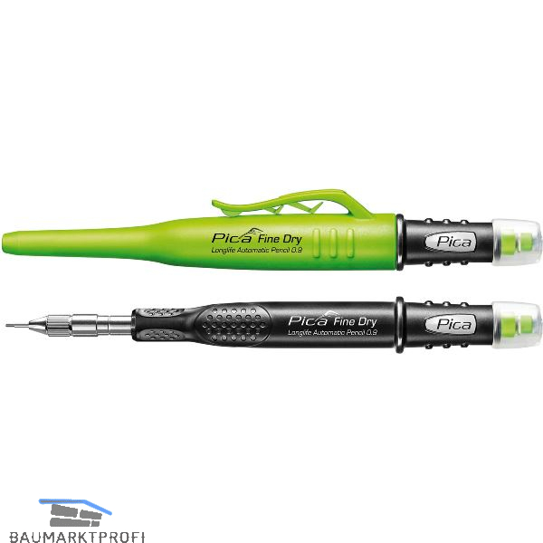 Präzision ohne Anspitzen. Minendurchmesser von nur 0,9 mm ist ideal für feines und präzises Anzeichnen. Drückerknopf als Schirmkappe und Dichtring am Schaft mit Rollstopp. Integrierter großer Radierer macht Markierungen blitzschnell korrigierbar. Nachhaltig nachfüllbar mit unterschiedlichen Ersatzminen. Aufschraubbares, schlankes Minenführungsröhrchen am vorderen Stiftende. High-Tech-Druckmechanik für automatischen Minenvorschub. Praktischer Köcherschoner für perfekte Ein-Hand-Bedienung aus extrem formstabilem Spezial-Kunststoff mit extra-starkem Clip.