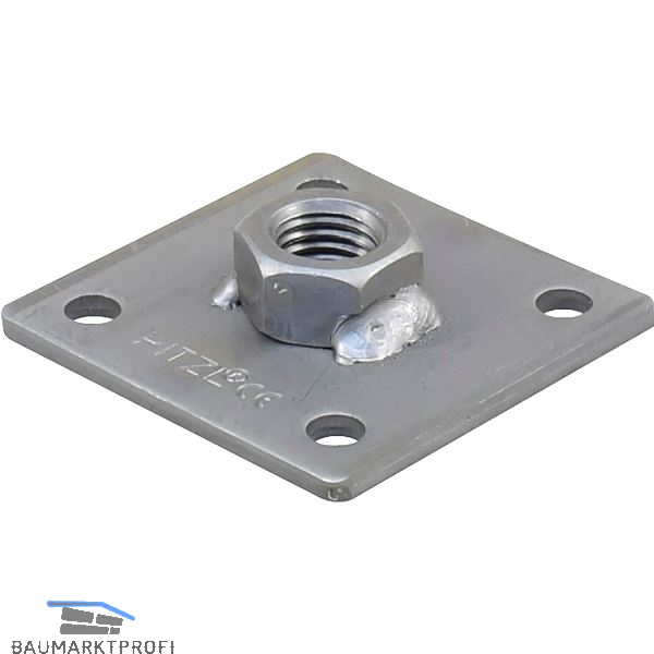 Anwendung:Die Mutter ist mit der 5-Lochplatte verschweißt und bietet bei den Pfostenträgern 11009 - 11013 eine zusätzliche Sicherung gegen Abhub.