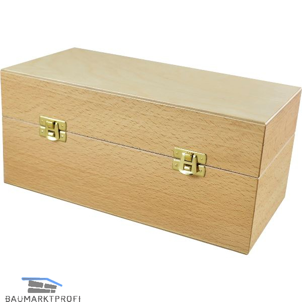 Holzkiste zur Aufbewahrung von Holzspiralbohrer und Aufstecksenker.