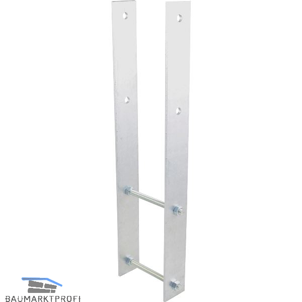 Die Pfostenträger bestehen aus zwei Flacheisen und zwei Gewindebolzen M12.
