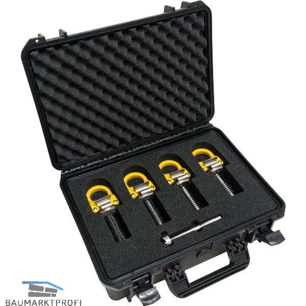 Inhalt: 4x Hebeklemmen inkl. 1x Bohrer (40 mm) und Transportkoffer