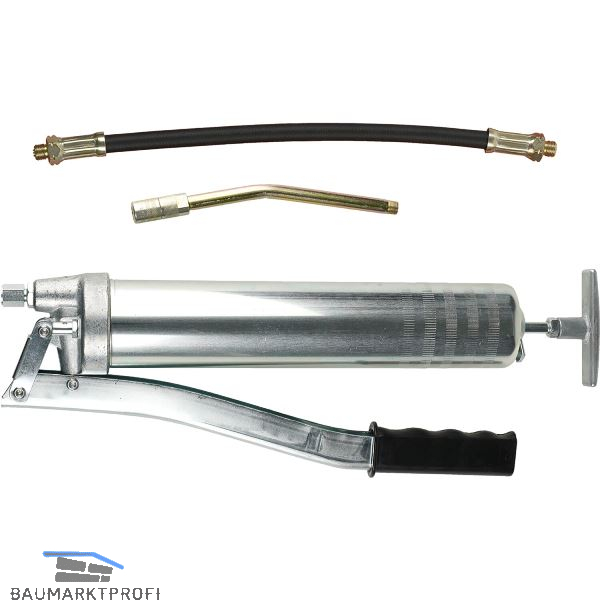 Füllbar mit Fettfüllgerät, Kartusche oder losem Fett. Inhalt 500 ccm / 400 g, Anschlussgewinde M 10 x 1. Alle Teile aus verzinktem Stahl.