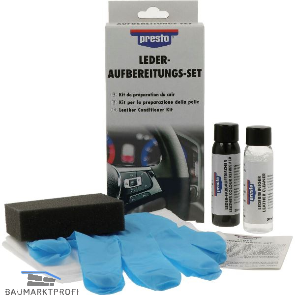 Mit dem presto Leder-Aufbereitungs-Set können Sie ganz einfach Leder (Glattleder) und Kunstleder wieder auffrischen.