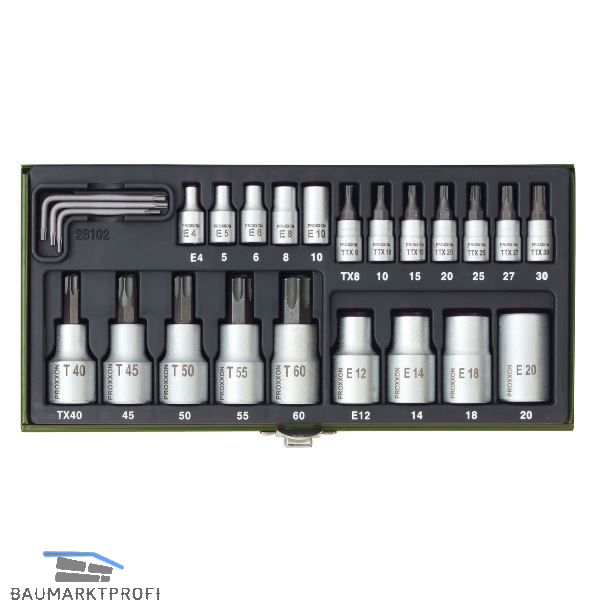 1/2" Antrieb Gr. TX 40, TX 45, TX 50, TX 55, TX 60, Außentorx Gr. E 12, E 14, E 18, E 20.