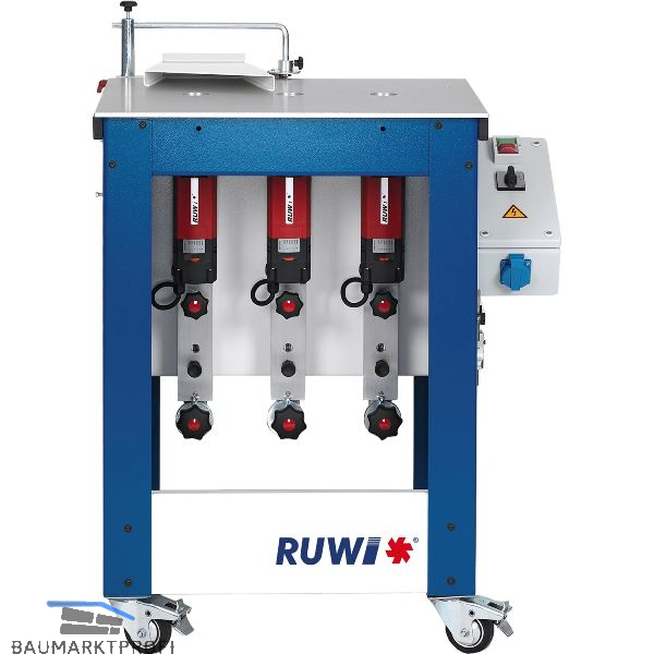 Komplett vormontierter RUWI Frästisch Classic mit 3 Antriebseinheiten, Werkstückverdeckung, abnehmbarer Absaugtunnel mit Absaugstutzen ø 120 mm, Bedienungsanleitung