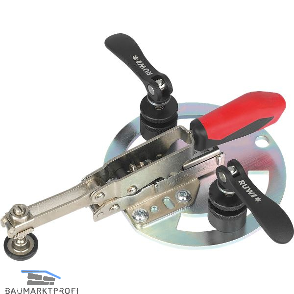 Die im Lieferumfang enthaltenen 2 Schnellspanner ermöglichen ein schnelles und werkzeugloses Positionieren und Fixieren des Senkrechtspanners auf der Aufspannplatte. Durch die runde Adapterplatte lässt die Druckspindel äußerst flexibel positionieren. Der Einsatz des Senkrechtspanners erhöht die Sicherheit und steigert die Effizienz bei Bohrarbeitsgängen. Der automatische Höhenausgleich sorgt für hohen Komfort beim Spannen, da er sich ohne Verstellen Materialdicken von 0 - 40mm anpasst.