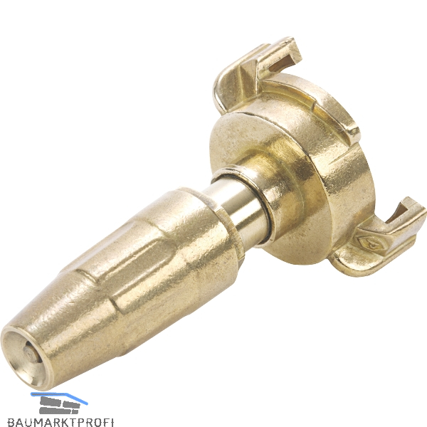 Technisches Messing. Schwere Ausführung mit Schnellkupplung (handelsüblicher Klauenabstand 40 mm) aus Pressmessing mit NBR-Dichtung, stufenlos verstellbar vom Sprüh- bis zum Vollstrahl.