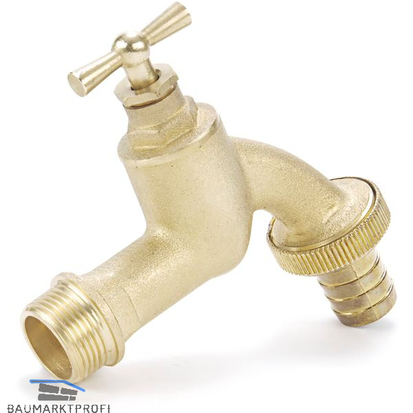 Auslaufventil mit 2-tlg. Schlauchverschraubung, flachdichtend aus Messing. Max. Betriebsdruck 8 bar