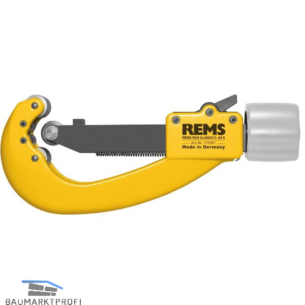 Robuste, stabile Konstruktion für harten Einsatz. Stabile Spindel, lange Spindelführung und spezialgehärtete Gegendruckrollen für genaue Führung am Rohr, leichtes Zustellen, leichtes Schneiden und präzisen, rechtwinkligen Schnitt. Ergonomischer Drehgriff aus Metall für leichtes Arbeiten und lange Lebensdauer. Speziell gehärtetes Schneidrad aus zähhartem REMS Schneidbackenstahl. Schneidrad durch Begrenzung der Zustellbewegung vor Berührung mit den Gegendruckrollen geschützt. Mit nadelgelagertem Schneidrad und nadelgelagerten Gegendruckrollen für besonders leichtes Schneiden. Schnellverstellung der Zustellspindel in beiden Richtungen.