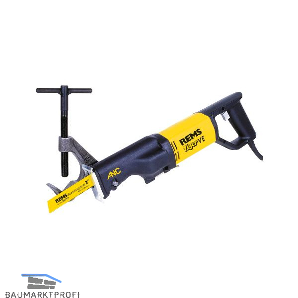 Elektrische Rohr-Säbelsäge mit Vario-Elektronik (VE) zum mühelosen, schnellen, rechtwinkeligen Sägen mit Führungshalter und zum frei Hand Sägen bis 6", 250 mm. Antriebsmaschine mit Spatenhandgriff, wartungsfreiem, wasser- und staubgeschütztem Oszillationsantrieb mit allseitig nadelgelagertem Kurbeltrieb (ANC), aggressivem