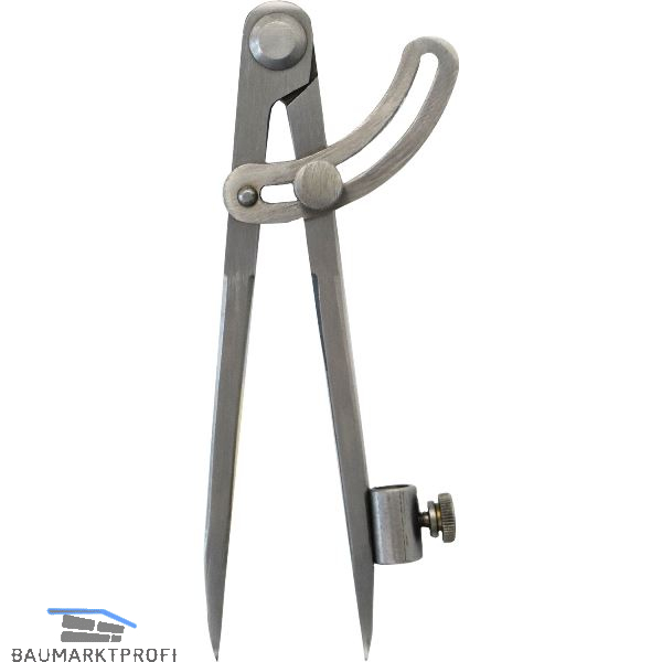 Mit Stellbogen, Klemmschraube und Bleistifthalter, aus Stahl, geschmiedet, mit 3-teilig gefrästem Gewerbe, geschliffen und poliert, Schenkel achtkantig geschliffen. Spitzen gehärtet und geschliffen. Mit extra starkem Nietscharnier.
