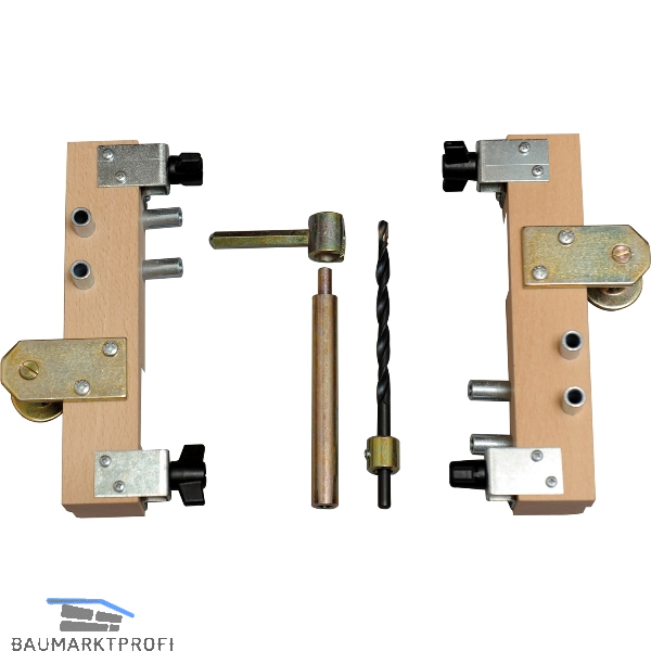 Lieferumfang:1 Paar Bohrlehren mit Führungshülsen1 Stufenbohrer mit Stellring1 Eindrehkopf1 Richtstift