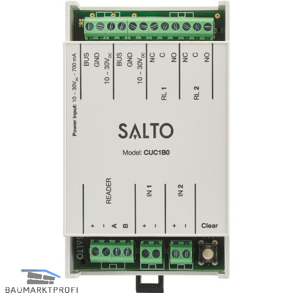 - enthält Port-Schnittstellen für 2 Relais und 1 SALTO-Lesegeräte