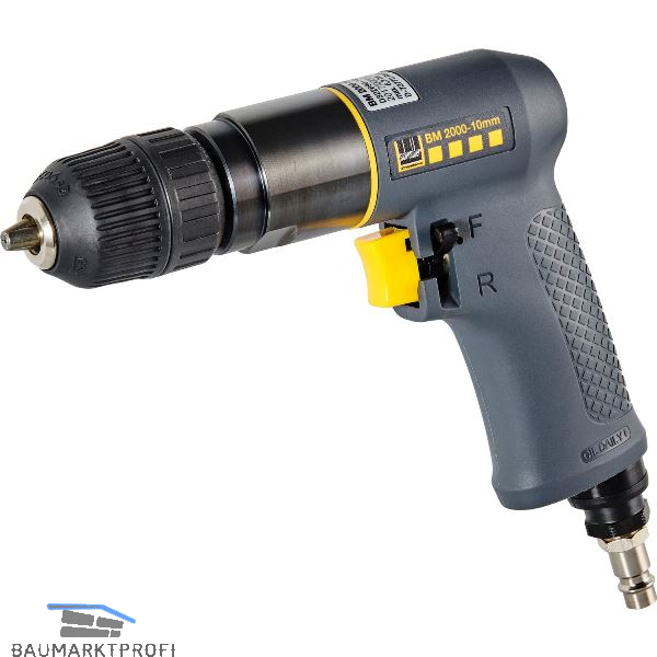 Leistungsstark durch kräftigen Druckluftmotor für professionellen Einsatz im Holz-, KFZ- und Metallhandwerk. Schneller Bohrerwechsel durch Schnellspannbohrfutter ohne zusätzliches Werkzeug. Feindosierbarer Betätigungshebel und einfache links-rechts Umschaltung. Die Abluft wird durch den Handgriff mit eingebautem Schalldämpfer vom Anwender weggeführt. Ergonomische Form und sehr geringes Gewicht. Kein Verwirbeln von Staub und Bohrspänen durch Abluftführung nach unten.