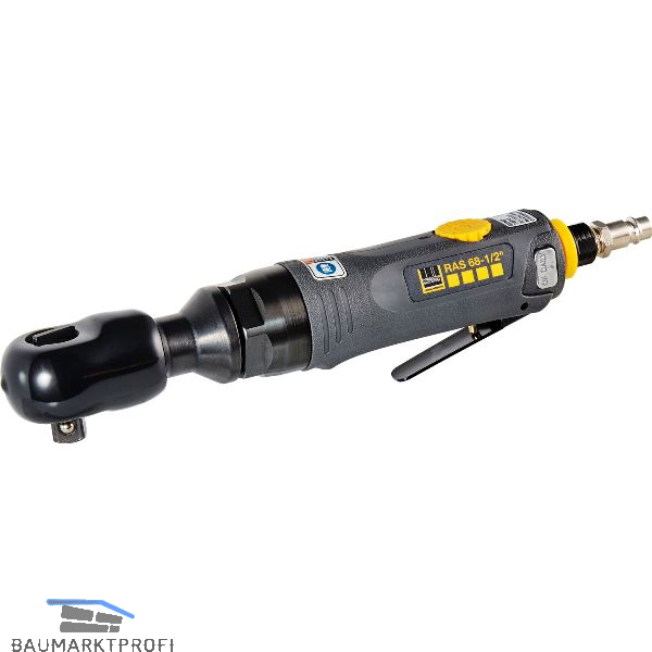 Robuster Ratschenschrauber mit langlebigem Ratschen-Mechanismus für professionellen Einsatz überwiegend KFZ- und Metallhandwerk. Kompakte Bauform ermöglicht das Schrauben an besonders beengten und schwer erreichbaren Stellen. Drehzahlregulierung und einfache links-rechts Umschaltung am Ratschenkopf. Der gummierte Handgriff liegt sicher in der Hand und reduziert die Vibrationen.