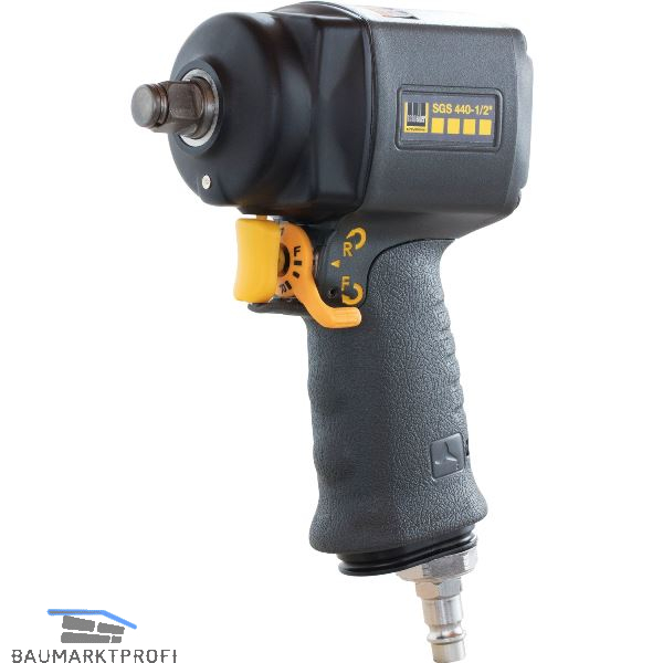 Leistungsstarkes Zweihammer-Schlagwerk für hohes Losbrechmoment von bis zu 700 Nm. Ermüdungsarmes Arbeiten durch optimale Schwerpunktlage und ergonomische Griffkonstruktion. Komfortable Bedienung durch feindosierbaren Auslöser und 2-stufiger Drehmomenteinstellung (Rechtslauf) direkt am Auslöser. Außergewöhnlich leicht durch leichtes Kompositgehäuse. Kompakte Bauweise für Arbeiten an beengten Stellen. Rutschhemmender und ergonomisch geformter Handgriff aus Gummi. Besonders geeignet für Kfz-Betriebe, Reifendienste, Reparatur-, Montage- und Metallbetriebe.