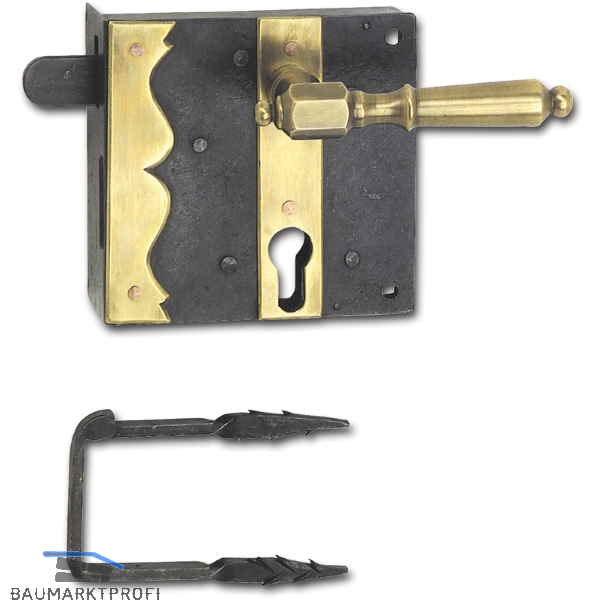 Rustikales Schlossset Newcastle BB,links,DM 75,Eisen verzinkt geschwärzt/Messing